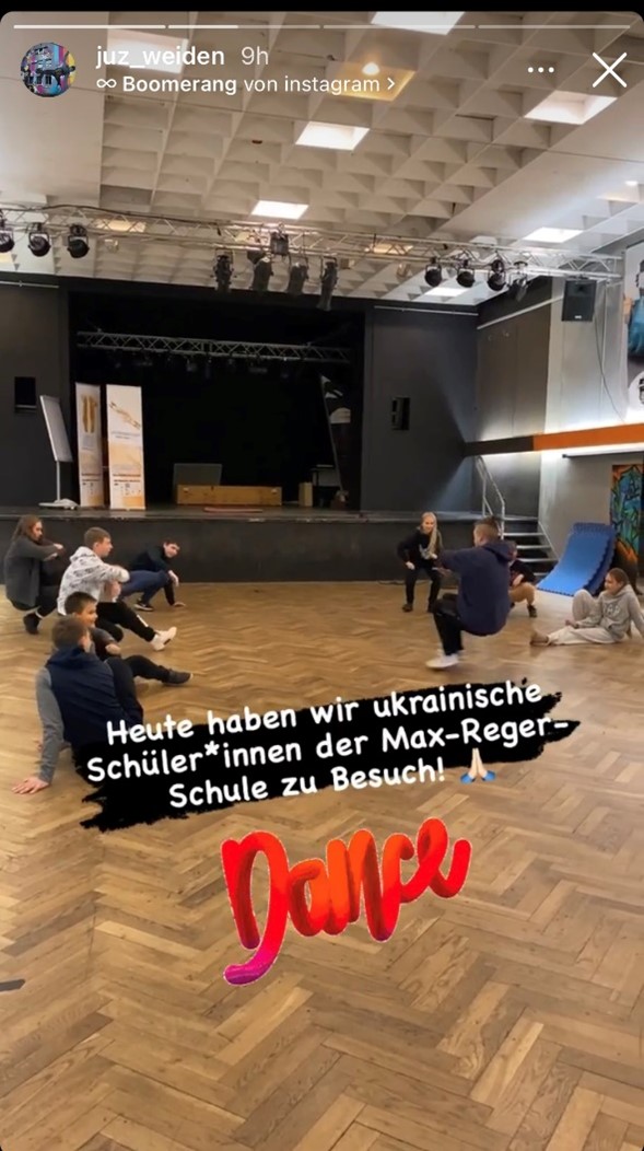 Im Anschluss an die Führung konnten die Max Reger Schüler/innen ihr Talent in HipHop-Tanz und Graffiti Workshops unter Beweis stellen.