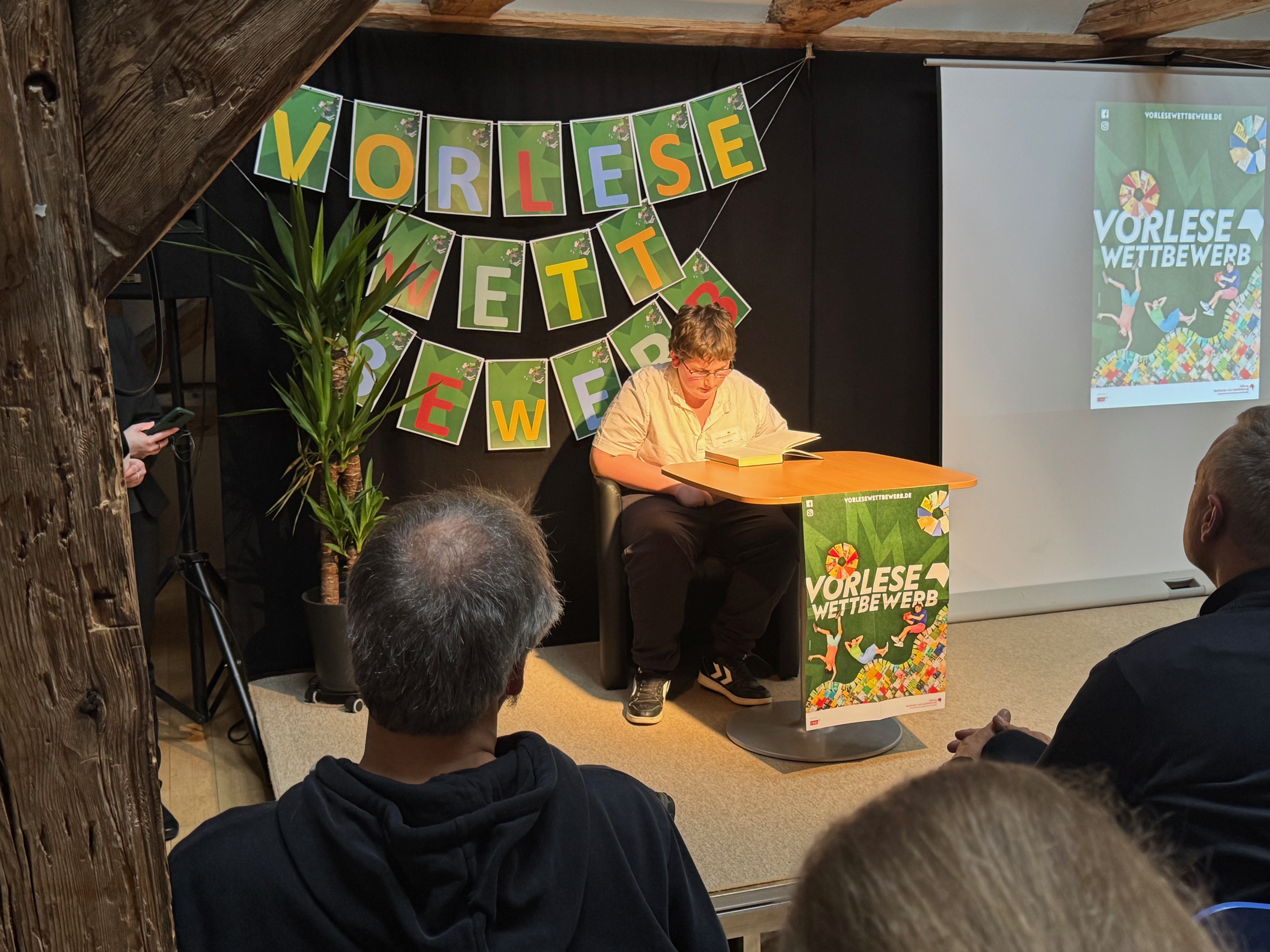 Am 25.02.2025 trat unser Schullesesieger Myke Birner aus der Klasse 6a beim Kreisentscheid des Vorlesewettbewerbs in der Regionalbibliothek Weiden gegen zehn Schülerinnen und Schüler aus der Stadt Weiden und dem Landkreis Neustadt an. Begleitet wurde er von seinen Eltern und Lehrerin Frau Ram. Myke erreichte am Ende leider nicht den ersten Platz, dennoch hat er unsere Schule souverän vertreten und wurde zum Abschluss des Wettbewerbs mit einer Urkunde sowie einem Buchpreis des Börsenvereins des Deutschen Buchhandels geehrt.