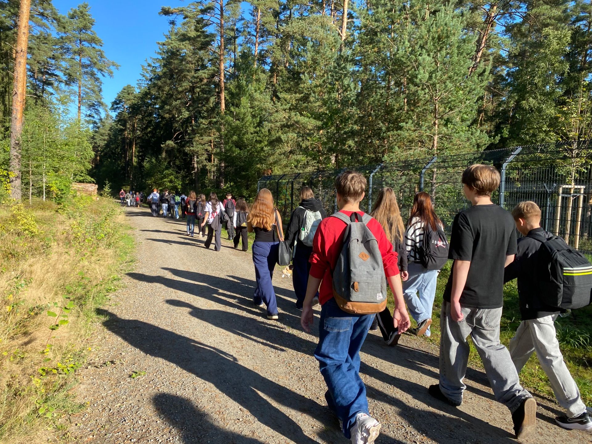 Der Tag begann mit einer etwa einstündigen Wanderung, bei der die Schülerinnen und Schüler nicht nur ihre Ausdauer unter Beweis stellten, sondern auch die bunte Herbstlandschaft bewundern konnten. Das Rascheln des Laubes unter den Schuhen und die warmen Sonnenstrahlen machten die Wanderung zu einem besonderen Erlebnis.