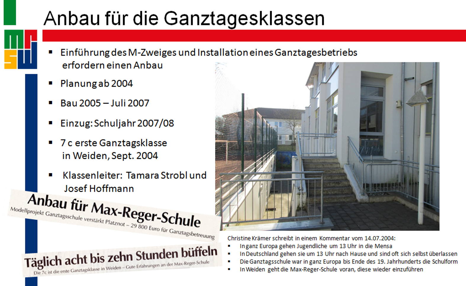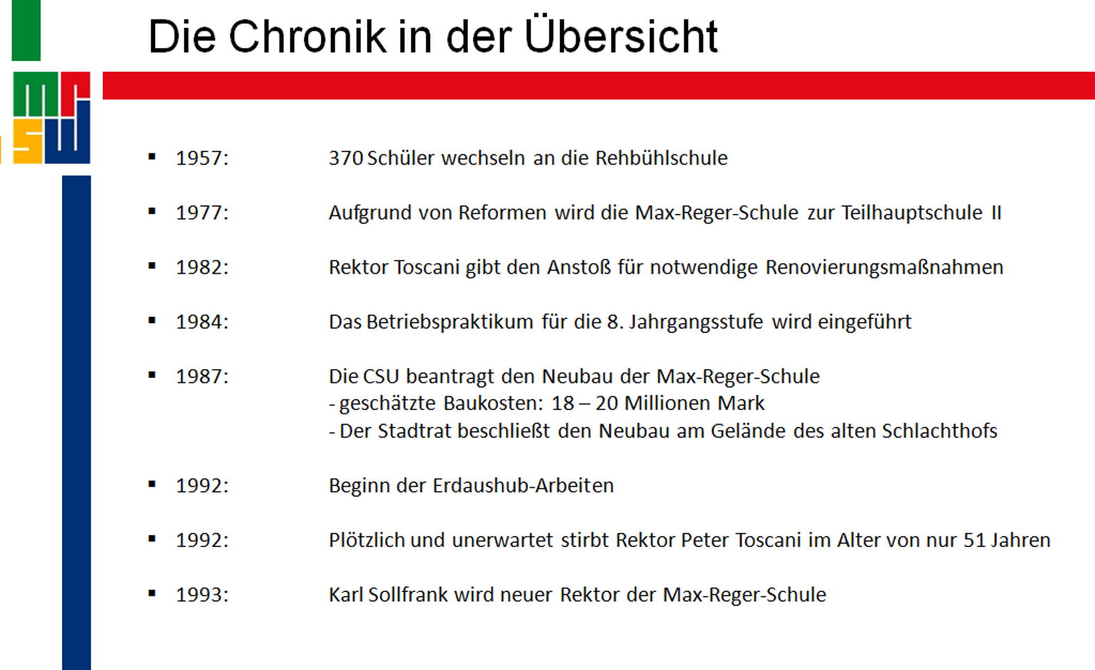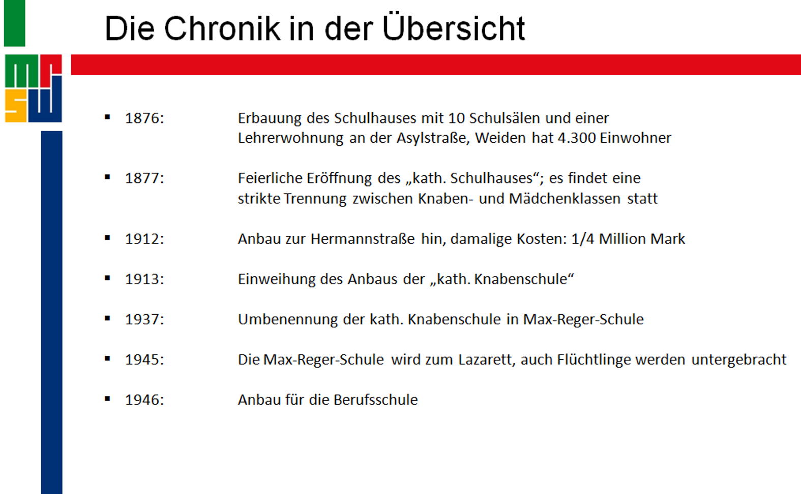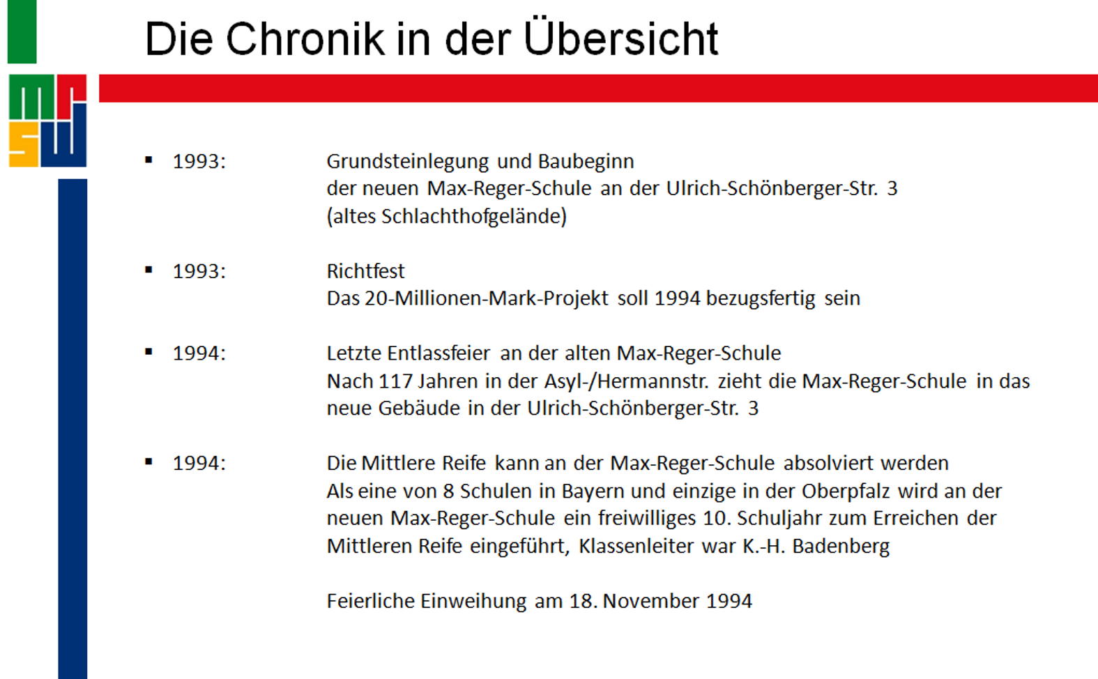 Hier erhalten Sie einen kleinen Einblick in die Nutzung unseres Schullhauses anhand der Chronik der Max-Reger-Mittelschule.