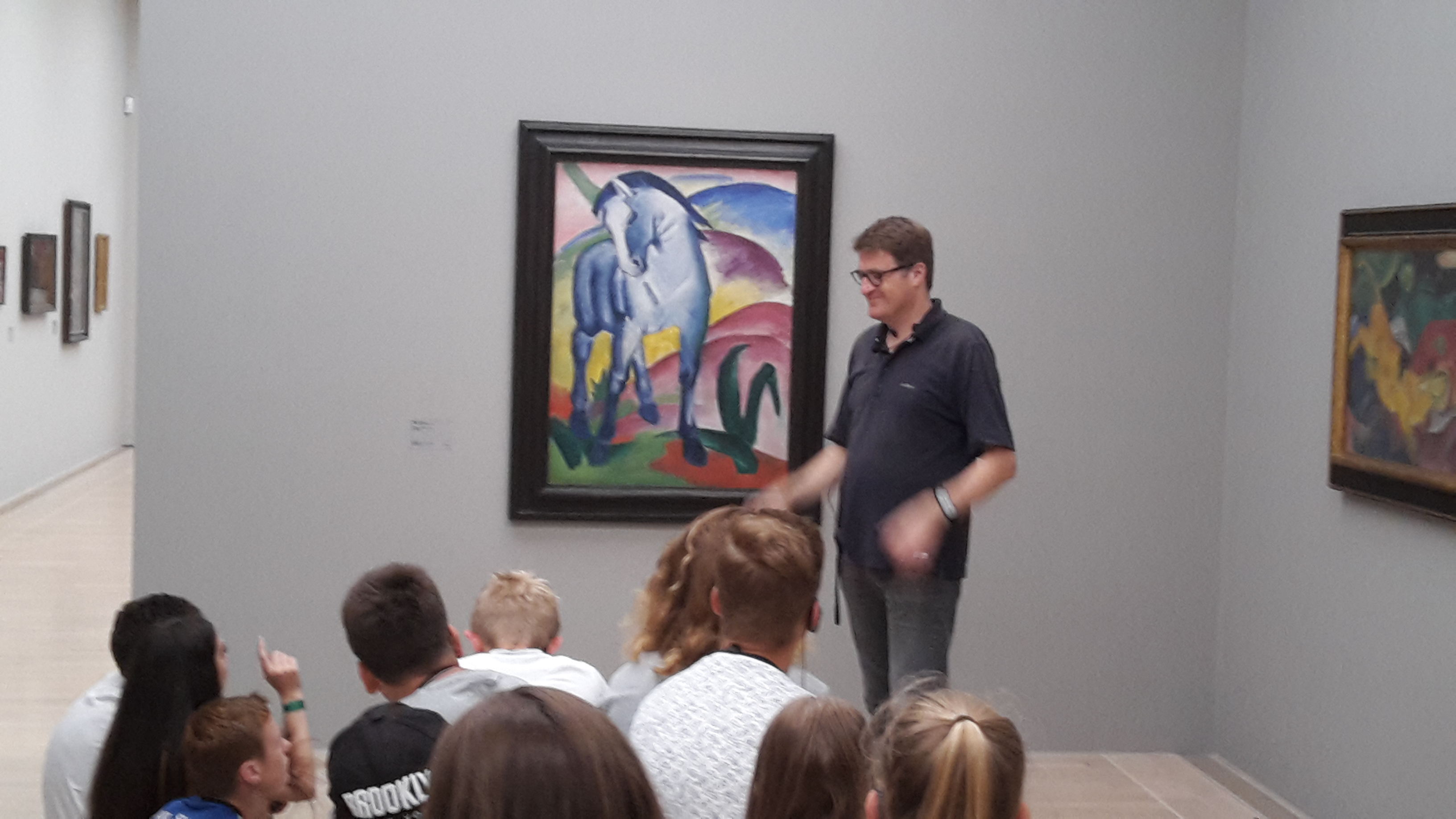 Am Donnerstag, den 19.07.2018 machte die M8 der Max-Reger-Mittelschule mit Frau Kuran und Herrn Raß einen Ausflug nach München ins Lenbachhaus. Das Lenbachhaus ist ein Kunstmuseum mit Ausstellungen von unteranderem Franz Marc und Wassily Kandinsky. Die Klasse kam um 11:15 Uhr in München an. Um 12:15 Uhr ging dann die Führung durchs Lenbachhaus los. Ein Museumsführer gab den Schülern der M8 viele Informationen über verschiedene Kunstwerke. Nach 90 Minuten Museumsführung durften die Schüler noch eine Weile in der Stadt sein und sich vergnügen. Als die Schüler dann nach weiteren 2 Stunden und 30 Minuten Zugfahrt wieder in Weiden ankamen, durften sie um 19:15 Uhr nach Hause gehen.