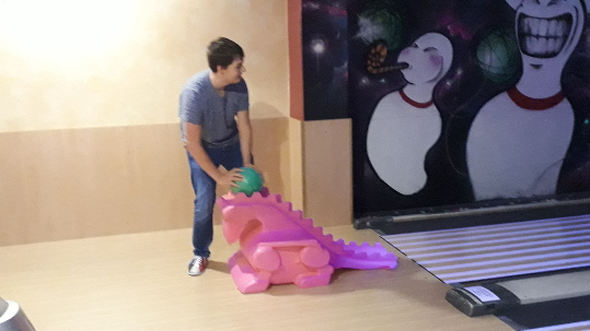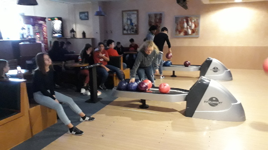 Martinez hatte - wie auch in der 7. Klasse schon - 4 Bahnen für uns gebucht. Dort angekommen, bekamen wir alle neue Schuhe - nur fürs Bowlen. Von Größe 37 bis 47 war alles dabei! So ausgestattet teilten wir uns in Gruppe ein und konnte losgehen! Die Mädchenschoben in 2 Gruppen und die Jungs auf den anderen beiden Bahnen. Wir hatten viel Spaß! Auch unser Lehrer Herr Sennert ließ es sich nicht nehmen, mit der Kugel die Pinsabzuräumen. Die zwei Stunden vergingen wie im Flug! Schade, dass es wahrscheinlich unser letzter Bowlingausflug war!