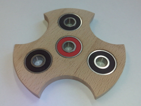 Das erste Projekt, dass die Schüler zusammen mit ihrer Technik-Lehrerin Frau Siller praktisch umgesetzt haben, war ein FidgetSpinner. Die Schüler haben dafür alle Schritte der Planung, von der Skizze bis zur Festlegung der notwendigen Arbeitschritte, selbst realisiert. Ein Modell des FidgetSpinners wurde dann aus Holz gefertigt und ausprobiert. Abschließend wurde die CAD-Zeichnungen dann auf den 3-D-Drucker übertragen.