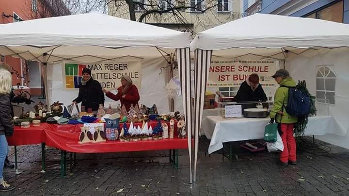 Tolle Geschenkideen, Adventsgestecke, Türkränze und selbstgestrickte Mützen hatte der kreative Teil des Elternbeirats für den Adventsverkauf auf dem Oberen Markt gebastelt.