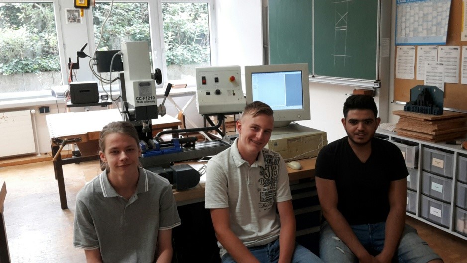 Schüler aus dem Technikunterricht der 9. Klasse konnten in die AG CNC gehen. So ist gewährleistet, dass interessierte Jugendliche Einblick in dieses interessante Aufgabenfeld der CNC-Technik erhalten. Vorkenntnisse in Technischem Zeichnen und CAD (Computer Aided Design = Zeichnen am PC) waren also vorhanden.