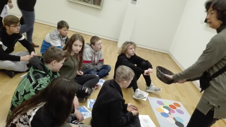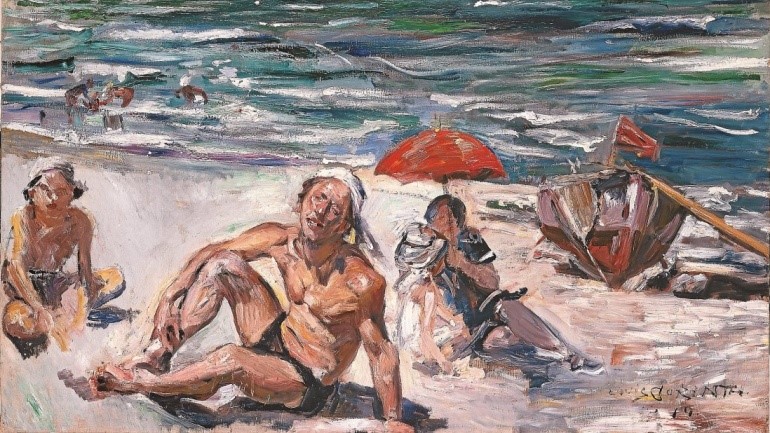 Schließlich endete der Rundgang vor einem Bild des Künstlers Lovis Korinth, das eine Familie an einem Strand am Mittelmeer zeigt. Die Verwendung kräftiger Farben wurde hier analysiert.