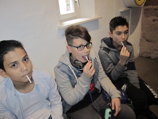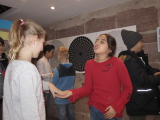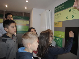 Dort angekommen erwartete uns ein kleiner Fußmarsch durch die Innenstadt bis wir an unserem Ziel ankamen: dem „Turm der Sinne“. Dieser ist ein interaktives Mitmach-Museum, in dem wir - in zwei geteilten Führungen - mit Auge, Ohr, Hand, Nase und Mund Sinnesreize und deren Verarbeitung an uns selbst ausprobieren konnten. Auch Wahrnehmungstäuschungen wurden uns dort erfahrbar gemacht.