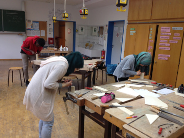 Um jedoch die Projektprüfung zu bestehen, ist eine lange Vorbereitung notwendig. So mussten sich alle Schüler zunächst die Kernkompetenzen in der Metall- und Holzbearbeitung zu Eigen machen.