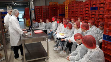 Als erstes bekam jeder Schutzkleidung, sonst darf man die Produktionsstätte nicht betreten. Dann haben wir Herrn Kelnhofer und Herrn Kartcher getroffen. Sie haben uns begleitet und uns alles gezeigt. Wir haben verschiedene Abteilungen besucht, z.B. die Brot- und Kuchenabteilung. Außerdem waren wir in einem Kühlraum, indem die Temperatur -18°C beträgt.