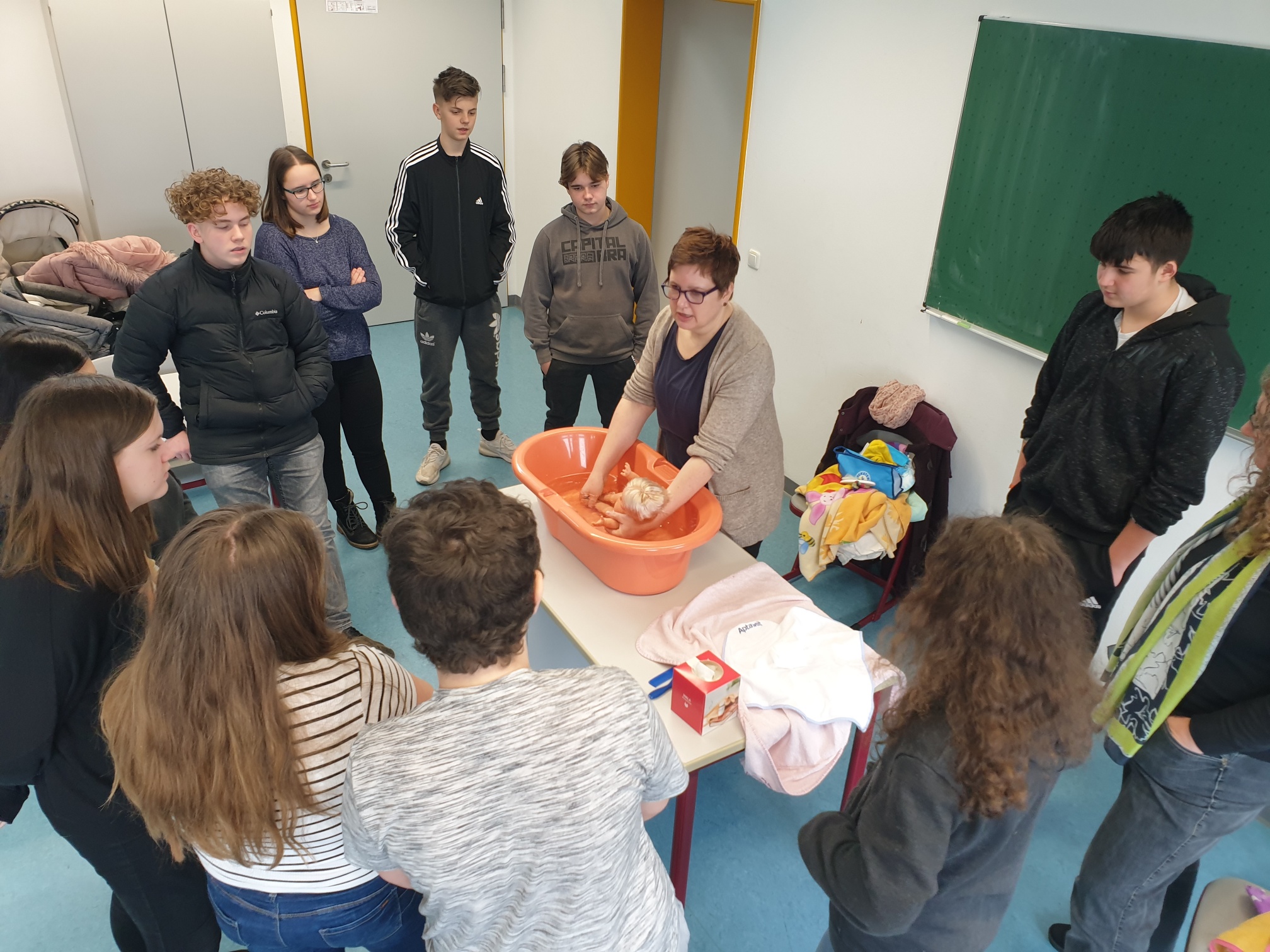 Möglich machte dies, das jährlich durch die Schulsozialarbeit und die Beratungsstelle Donum Vitae durchgeführte Babyprojekt. Anhand von „Real Care Babys“  lernten die Teilnehmer und Teilnehmerinnen innerhalb vier ereignisreicher Tage, was es bedeutet Verantwortung als Elternteil zu übernehmen. Die Simulatoren müssen rund um die Uhr wie echte Neugeborenen mit Nahrung und Pflege versorgt werden. Die Versorgung wird von einem Chipsatz der sich im inneren befindet aufgezeichnet und kurze Zeit später durch Fachkräfte mit den Jugendlichen thematisiert.