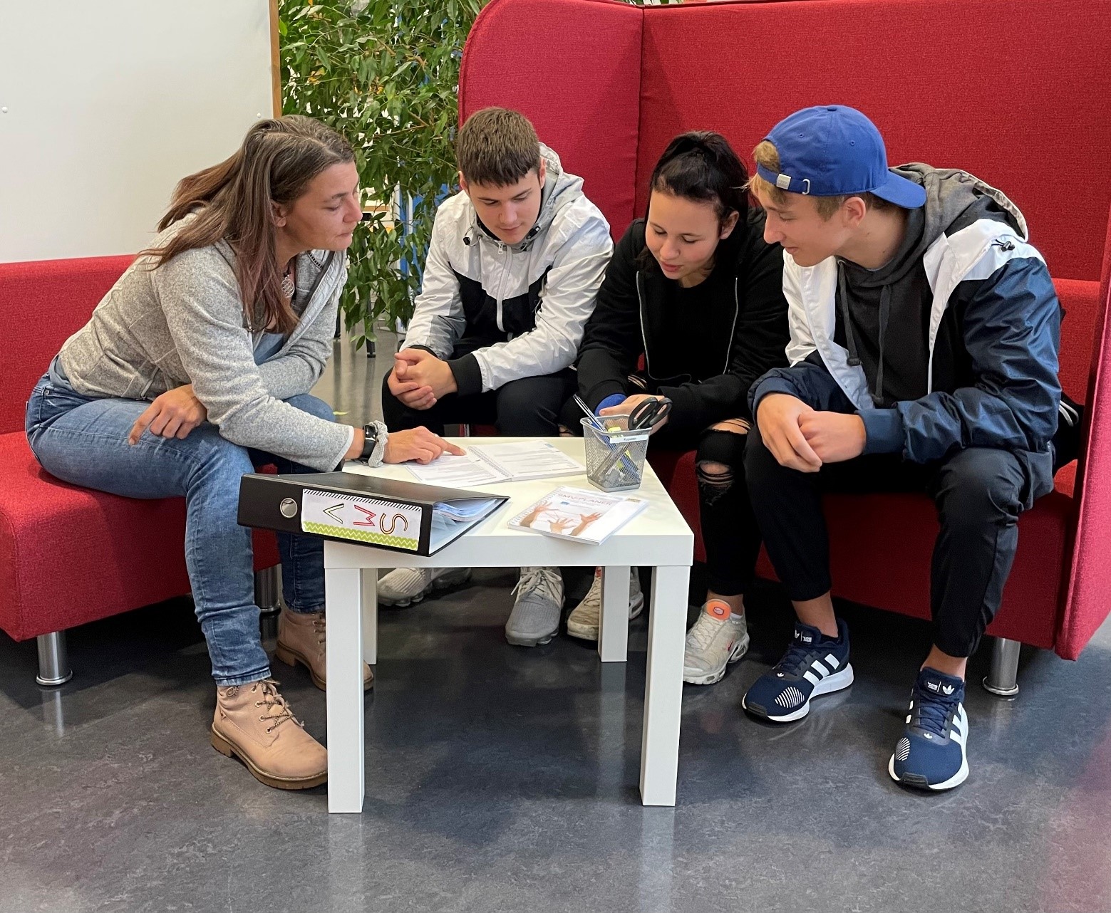 ...die neu gewählte SMV samt Verbindungslehrerin stürzen sich direkt nach der Wahl in die Arbeit :)