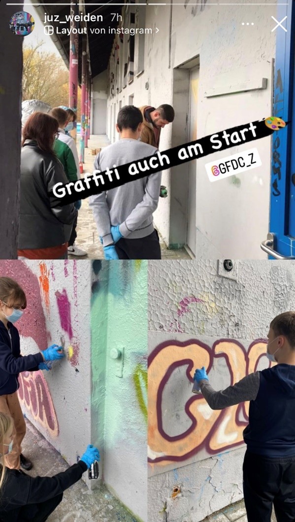 Im Anschluss an die Führung konnten die Max Reger Schüler/innen ihr Talent in HipHop-Tanz und Graffiti Workshops unter Beweis stellen.