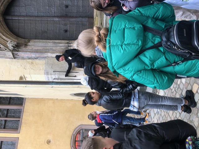 Passend zum Lehrplaninhalt „Mittelalter“ im Fach GPG machten sich die Klasse 6a mit Frau Ram und die Klasse Bkb mit Frau Shpotak im Februar mit dem Zug auf den Weg nach Regensburg, um bei einer Führung der Stadtmaus einiges zu erfahren: Wie entstand die Steinerne Brücke? Was hat es mit den einzigartigen Patriziertürmen auf sich? Wie lang ist eine Elle? Was ist eine Latrine? und vieles mehr.