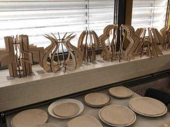 Im Rahmen der  BO-Maßnahmen besuchten wir auch die FOS/BOS und erlebten mit Produktdesignerin Tina Trummer sehr lehrreiche zwei Projekttage. Neben allgemeinen Infos über die Voraussetzungen für den Beruf des Produktdesigners, die Tätigkeits- und Aufgabenfelder und die Berufsmöglichkeiten hat uns die Praxis sehr fasziniert. Unsere Arbeiten: Erstellen von Skizzen für unsere Lampen aus Sperrholz, Arbeit mit der Laubsäge, kleben, das genaue Arbeiten und Kontrollieren der selbst gefertigten Produkte. So entstanden Prototypen unserer Lampen. Sehr interessant war der Weg vom Prototyp zur Massenproduktion, verdeutlicht an dem Lasergerät. Unsere Ergebnisse waren durchwegs sehr erfreulich.