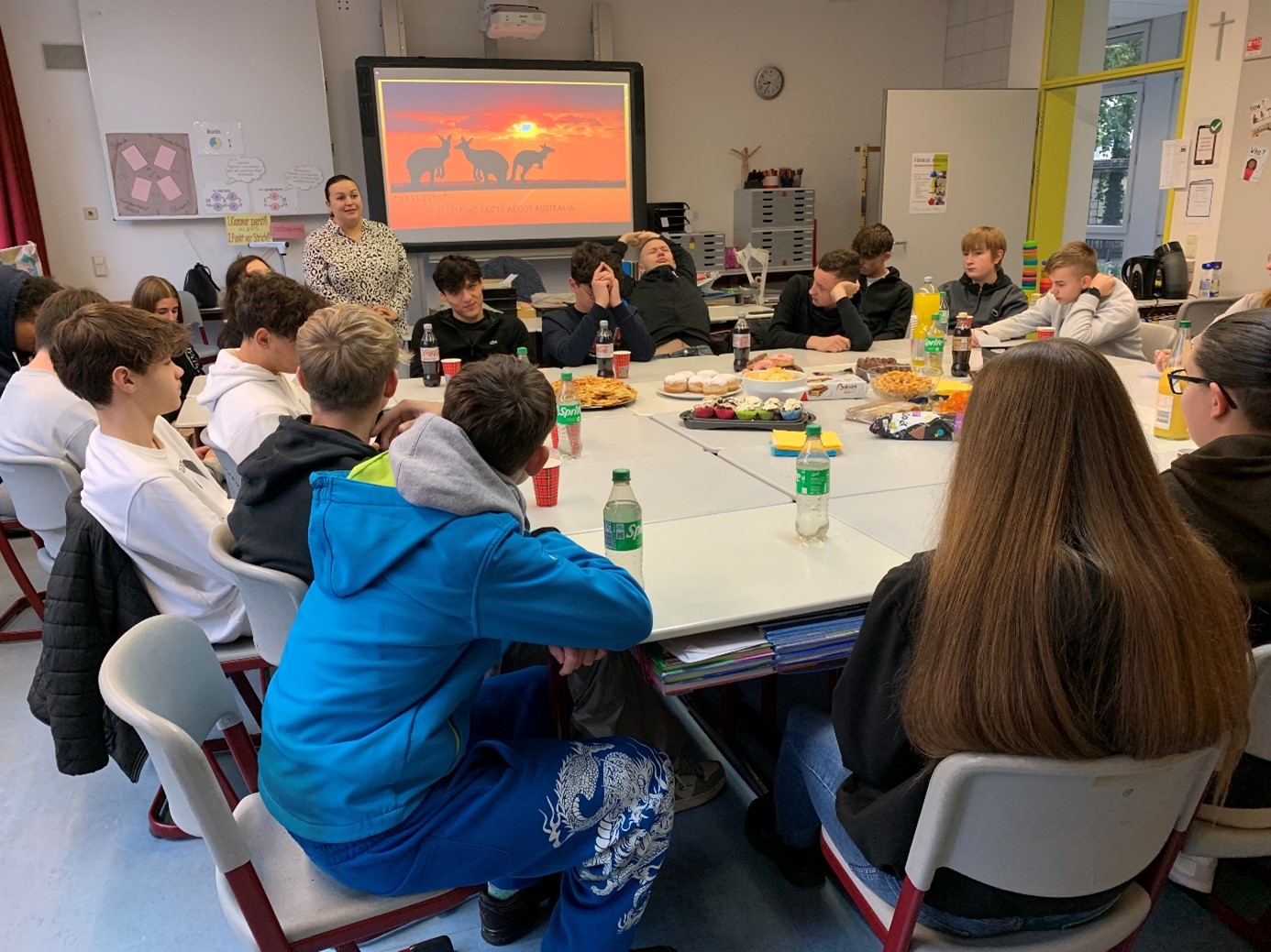 Am 25.10.2023 überraschte Frau Raschka uns, die 9M, mit einer PP-Präsentation über Australien zum Abschluss einer Unit in Englisch. Wir durften unsere Tische zusammenschieben und es wurden kleine Snacks angeboten. Frau Raschka teilte uns passende Blätter mit einem kurzen Text aus und erzählte uns auf Englisch spannende Sachen über Australien.