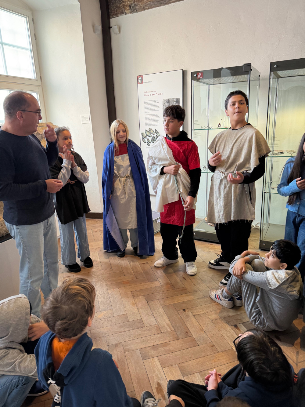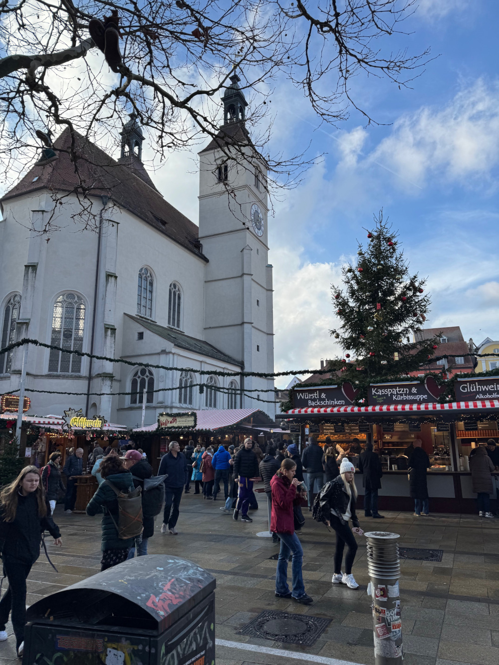 Dort angekommen ging es zu Fuß durch die Regensburger Innenstadt zum „Historischen Museum“, in dem wir eine interaktive Römer-Führung gebucht hatten. Nach ganz viel Input zum römischen Leben, bei dem wir auch selbst aktiv werden durften, ging es weiter zum Regensburger Christkindlmarkt, wo wir die vielen Buden bestaunen konnten und sich viele von uns mit leckerem Essen stärkten.